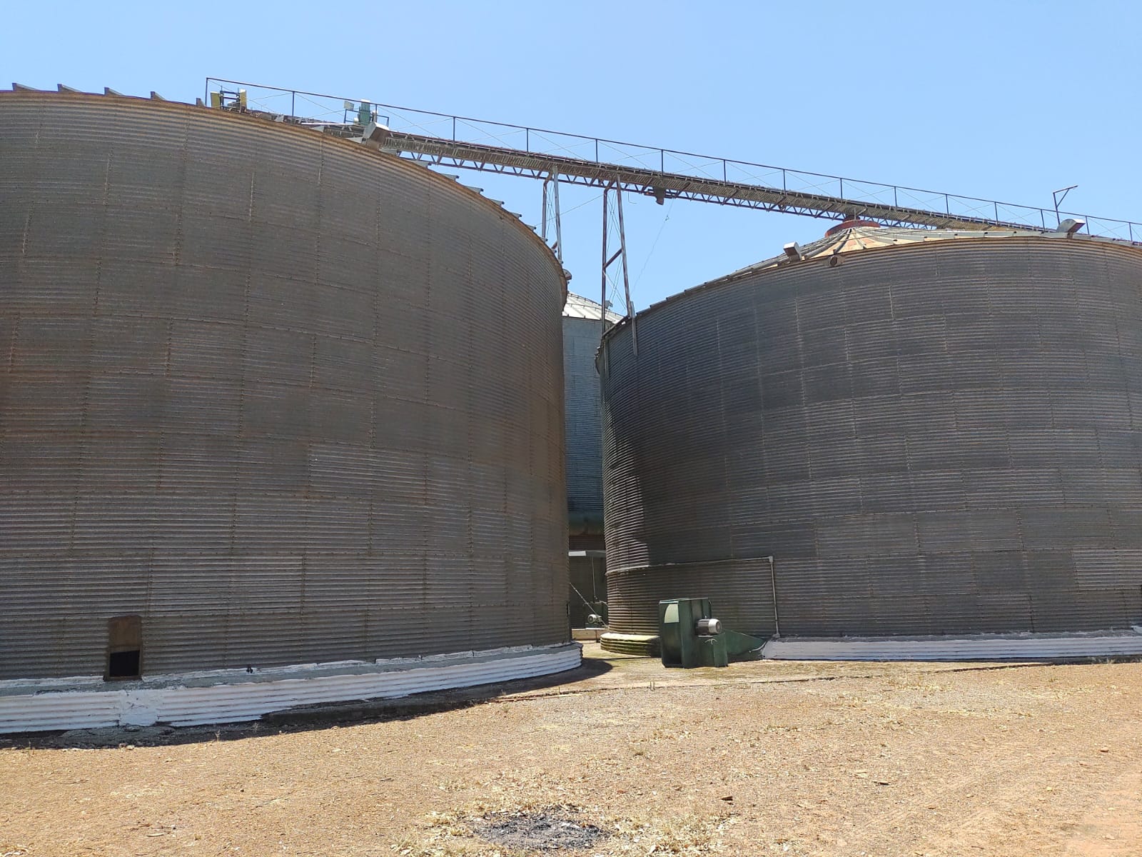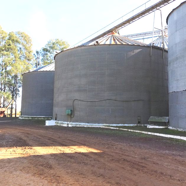 TEMOS PARA VENDA (REF13444) : Conjunto com 02 silos 27.000 sacos cada um , marca VITÓRIA , Diâmetro 16m , Chapa grossa , Armazenavam Soja , / Composto de Elevadores , Correia Transportadora , Roscas e demais componentes dos silos.