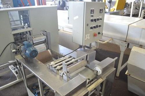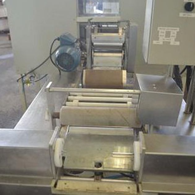 TEMOS PARA VENDA (REF13553) : Enrolador de massa de pastel semiautomático. Largura do rolo: 200 mm. Motor: trifásico 220 V (1 CV) / Dimensões: – Largura: 1.25 m – Altura: 1.58 m – Comprimento: 1.30 m.