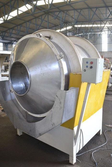 TEMOS PARA VENDA (REF13558) : Drageadeira bicônica capacidade 600 litros. Equipamento para revestimento de comprimidos e alimentos, com espátulas internas para tombamento do produto. Em aço inox 304. Voltagem: 220 V trifásica.